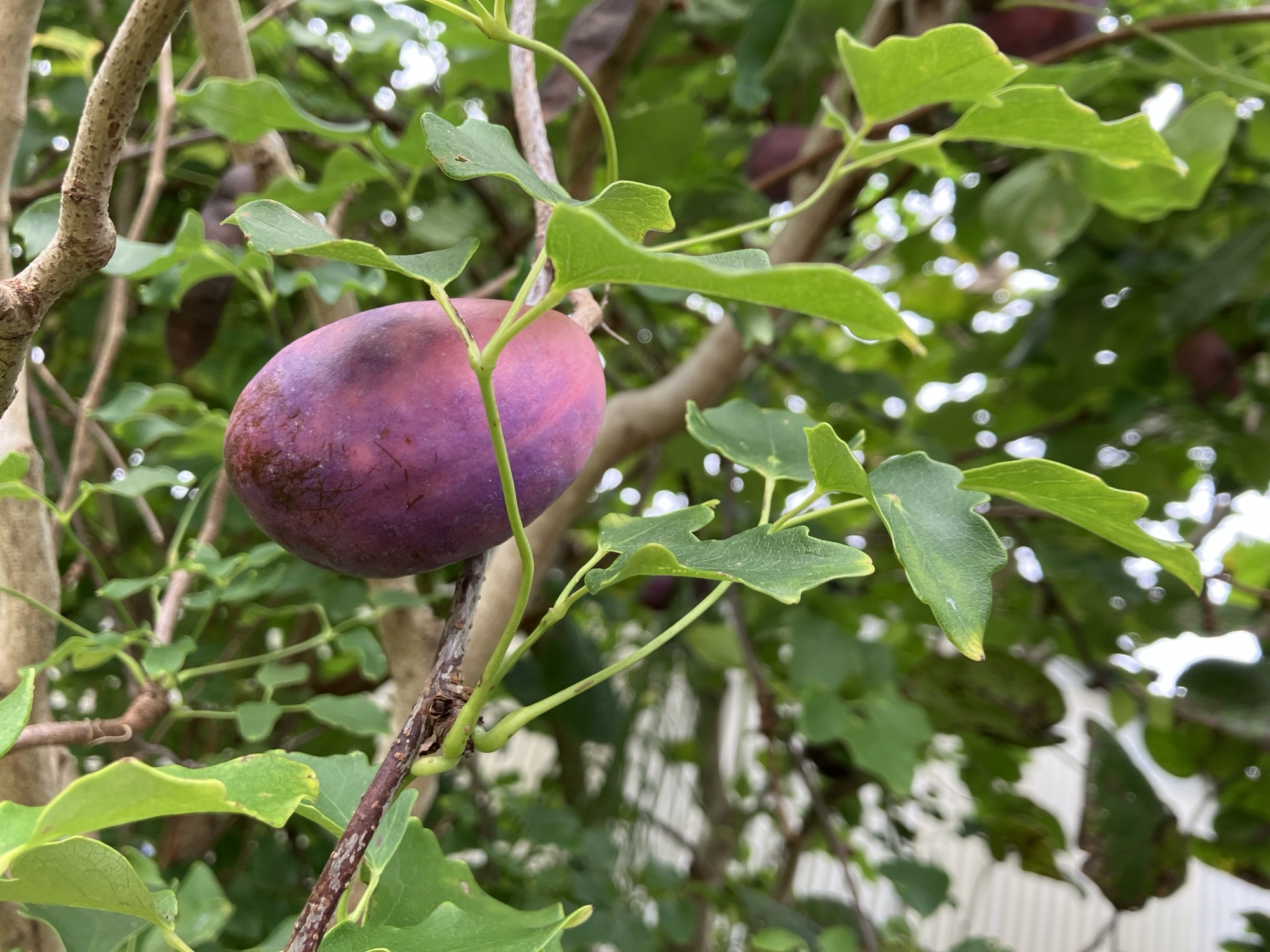 庭に自生しているアケビの実を収穫しました。